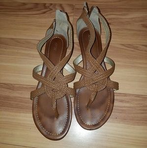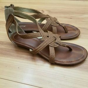 Tan brown sandals, worn a few times, a bit stained from lotion. Super comfortable & lightweight!!