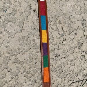 Woven southwestern style belt multi colored with gold tone buckle M to L