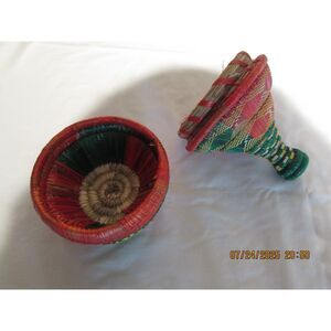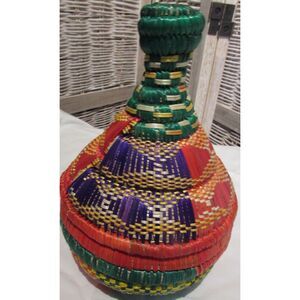 Woven wicker basket jar with lid multicolored art basket storage