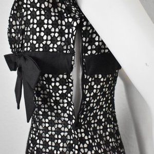 -Beautiful 50s / 60s vintage formal black lace dress with bow accent by Johnnye Jr