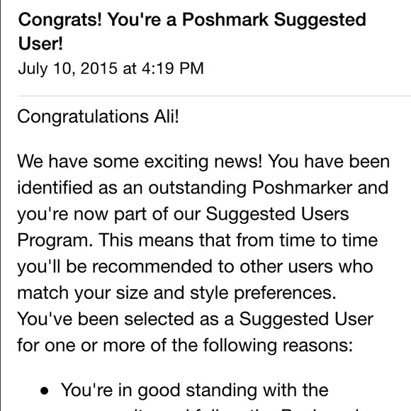 @itselaine thank you!! Posh changed its policy on one user accumulating many follower upon becoming a SU. A SU is now recommended in cycles (once a week) instead of daily. That's why many gals that became SUs a while ago have hundreds of thousands of followers. Buut I gain about 500 followers about once a week 😍
