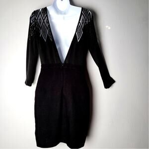 Wow Couture Black Bodycon Dress M | Crochet Lace Neckline V Back Cocktail Party