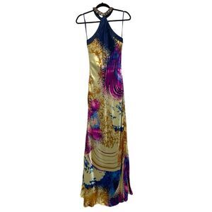Wow! Prom & Pageant 100% Silk Formal Dress Sleeveless Gold Blue Y2K Size 4