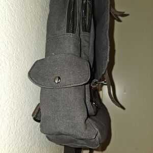 Gently used with minor flaws inside (see photos). It has many pockets to keep belongings organized! The backpack is approx. 16"H x 12"W.