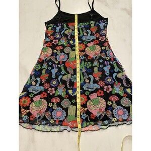 Wowo Psychedelic Mushroom 90’s Festival Skater Grunge Mesh Mini Slip Dress L