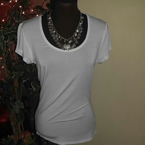 OH So, Feminine. This great light weight scoop neck LACE Back Tee is in white NWOT. Oh so SOFT!