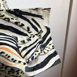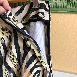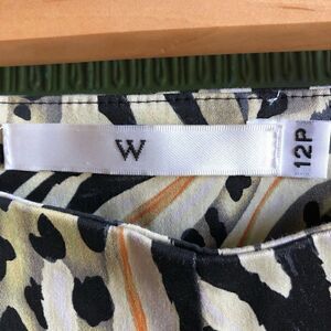 W (brand) pants. Size 12P. Off-white and black print. Side zip. Tapered at bottom. 97% cotton. 3% Lycra. Fabric has a great stretch. Waist measured flat is 16”. Inseam is 27.5”.