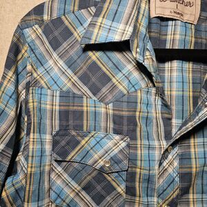 Wrancher By Wrangler Blue Plaid Men Button Down Shirt White Pearl Snap Size L