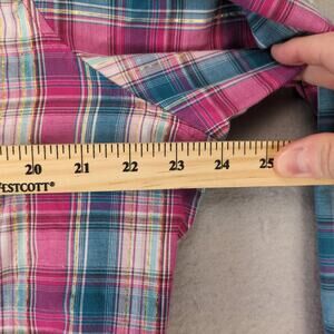 Wrancher by Wrangler Pearl Snap Shirt Women's XXL Pink Blue Gold Plaid Long Sleeve