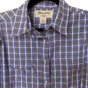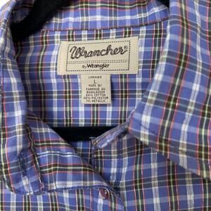 Wrancher by Wrangler Women's Purple Plaid Pearl Snap Western Shirt Size Large