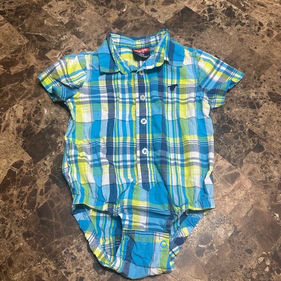 Wrangler Baby Plaid Button-Up Onesie – Blue/Green – Size 18M