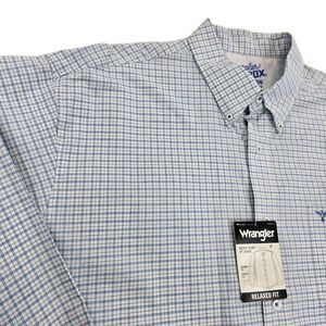 Wrangler 20X Competition Shirt Mens 2XT Blue White Plaid Pearl Snap Western Rodeo