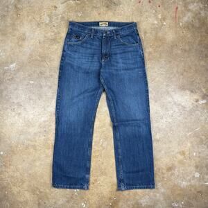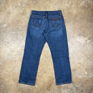 This pair of Wrangler 20X jeans delivers that classic Western denim look with a clean, mid-wash finish and subtle natural fading. Constructed from 100% cotton and made in Mexico, these jeans feature a traditional five-pocket design, branded hardware, and signature “W” stitched back pockets with a leather Wrangler patch. Style is tagged as 01MWXDB, a straight leg cut that offers a relaxed yet structured fit. Slight signs of wear present, like a tiny mark on the left thigh (see photos), but still plenty of life left in them.