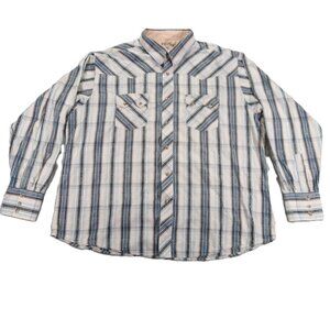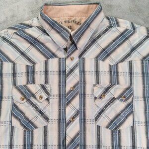 Wrangler 20X Pearl Snap Shirt Men XXL 2XL Long Sleeve Striped Beige Sawtooth Pockets