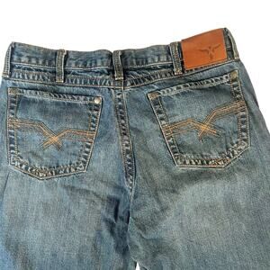 Wrangler 20X Premium Denim Jeans Medium Wash Straight Leg Leather Patch 34x22
