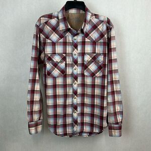 Wrangler 20X Snap Button Front Shirt Mens Sz Large Red White Blue Plaid Western