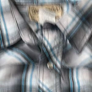 Wrangler plaid pearl snap in black,gray and turquoise sz 2XL 65% poly 35% cotton no flaws & no stains. Measurements in pics.