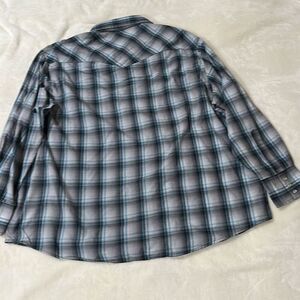 Wrangler 2XL black gray turquoise plaid pearl snap western shirt