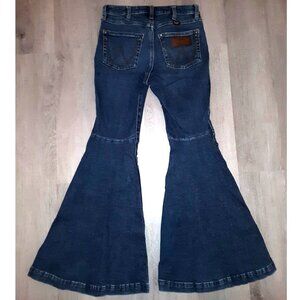 Tags: Wrangler jeans, Wrangler denim, western cowgirl fashion, rodeo, dark wash denim, denim flares, flared jeans, bell bottoms, bell bottom pants, wide leg pants, distressed denim, frayed jeans, bootcut jeans, boot cut jeans, distressed jeans, boho, bohemian, hippie, size 30 jeans, size 25 jeans,
