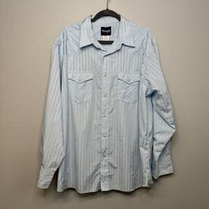 Wrangler 75222BL Pearl Snap Blue Striped Western Long Sleeve Shirt Size XXL