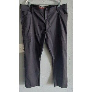 These Wrangler ALL TERRAIN GEAR Pants for men in size 44x30 are made of a durable blend of nylon and elastane, providing comfort and stretch for all-day wear. The mid-rise, straight-leg fit is perfect for casual, work, or business occasions, while the cargo pockets add functionality. Featuring a zip and button closure, these pants come in a stylish gray dark color and are machine washable for easy care. The nature-inspired theme and logo accents make these pants a versatile and practical choice for all seasons,Comfort.