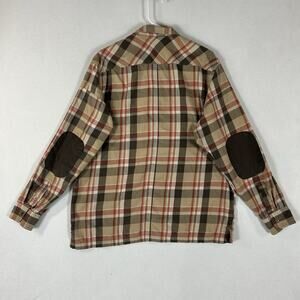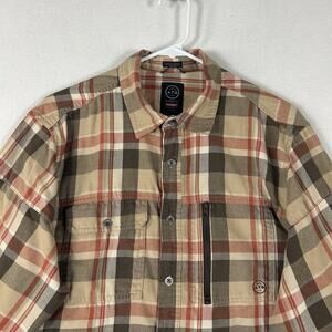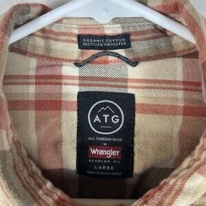 Wrangler ATG Long Sleeve Button Up Shirt Mens Large Brown Plaid Elbow Patches