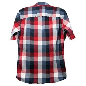 The Wrangler All Terrain Gear ATG Mens Red Plaid Shirt is a classic button-up shirt designed for men. Featuring a regular size small and short sleeves, this shirt is perfect for casual or everyday wear. The bold red plaid pattern adds a touch of style to the versatile design, making it a great addition to any man's wardrobe. Made by the trusted brand Wrangler, you can expect high-quality construction and durability from this stylish shirt.