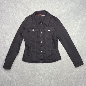 Wrangler Authentic Jean Trucker Jacket Womens M Black Slim Fit Stretch Classic