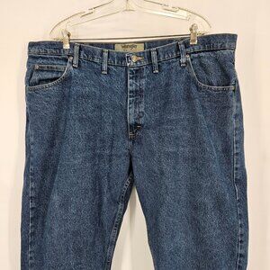 Wrangler Authentics Mens Dark Blue Denim Jeans 44x32 Straight Fit 100% Cotton Made In Mexico