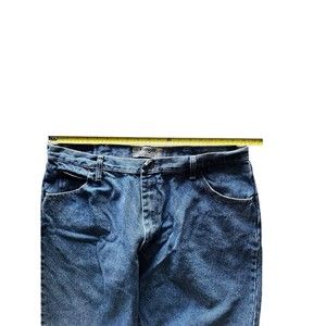 The jeans come with features such as easy care, comfort, and pockets, making them both practical and stylish. They have a waist size of 40 inches and a length of 30 inches, making them suitable for big and tall men. They can be washed in a machine without any worries. Get your hands on these genuine Wrangler jeans, perfect for all seasons: winter, summer, fall, or spring.