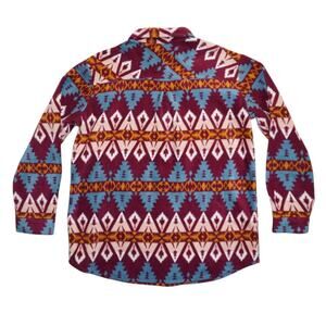 Wrangler Aztec Print Fleece Button-Up Shirt M Long Sleeve Retro Western