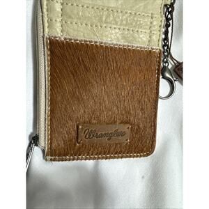 Wrangler Aztec Print Mini Zip Wallet ID Credit Card Holder Tan Hair On Hide NWT