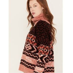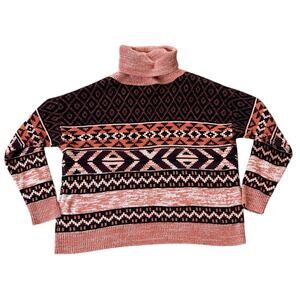 Wrangler Retro Southwestern Turtleneck Sweater. Size Medium. Pretty pink, orange, and purple colorway. Aztec, southwestern design.