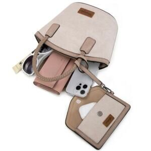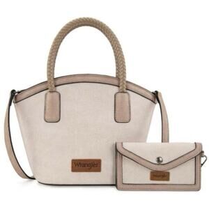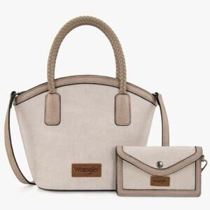 Wrangler Beige Mini Tote Purse Set w/ Wallet Adjustable Strap & Card Slots NEW