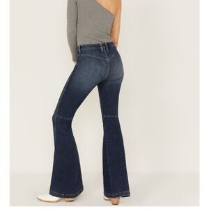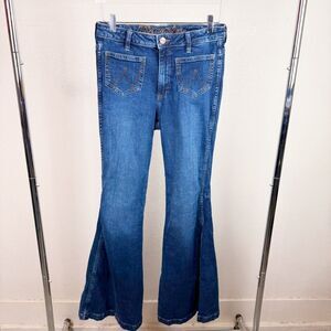 Wrangler Bell Bottom Flared Dark Denim Jeans Front Pocket Stretch Size 28