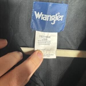 This Wrangler black long sleeve shirt is perfect for any occasion! With its black stripes and pearl snap buttons, it will be a great addition to your wardrobe.