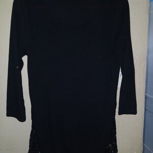 Stylish black blouse with studded cross design. Features lace detailing on sides. Perfect for casual wear.