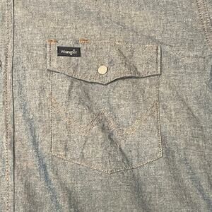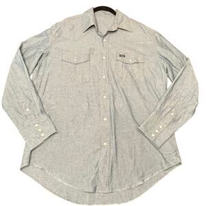 Wrangler Blue Chambray Denim Pearl Snap Button Down Shirt L XL