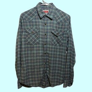 Wrangler Blue Checked Button Up Collared Shirt Size Small