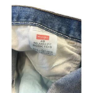 Classic men’s Wrangler blue jean shorts in size 48 with a relaxed fit, perfect for casual, vintage, or workwear style. Features durable medium-wash denim, zip fly, and roomy cut. Great for 90s/Y2K inspired looks or everyday wear.
