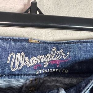 Wrangler Blue Mid Rise Medium Wash Slim Fit Straight Leg Jeans Womens Size 9x28