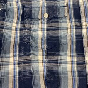 Wrangler Blue Plaid Button Down Shirt- Size Medium
