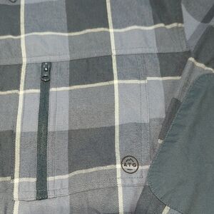 Stylish blue plaid shirt. Features button-down design. Perfect for casual wear. This is an amazing all-terrain gear Wrangler shirt regular fit XXL has extra padding on the elbows metal buttons, a zipper in the front for a zipped up pocket. very nice shirt for outdoors, camping, hiking ready to go pre-owned
