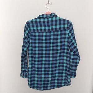 Wrangler dark and light blue plaid 100% cotton flannel long sleeve button front shirt