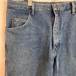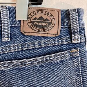 These are high quality medium Wash blue denim jeans from wrangler blue ridge clothing company. Good condition.