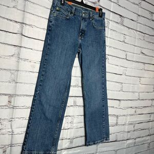 Experience timeless style with Wrangler's blue straight jeans, featuring a classic fit and a traditional rigid denim look. These jeans offer a versatile and enduring appeal, perfect for any casual occasion. SZ 12 or 28 waist. Originally retails for $59.99