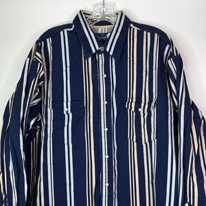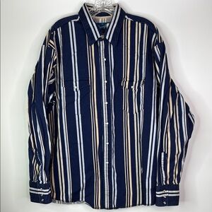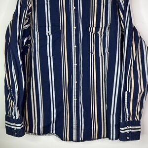 Wrangler Blue Striped Pearl Snap Western Button Down Shirt XXL