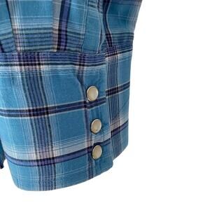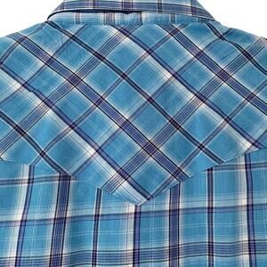 Wrangler Blue White Plaid Western Pearl Snap Button Down Long Sleeve Shirt Large