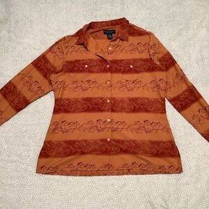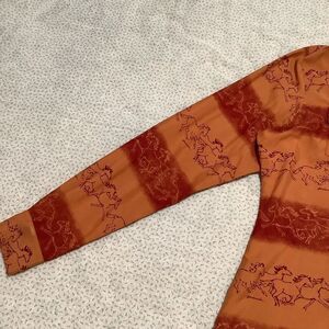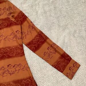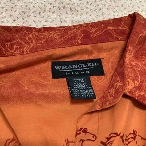 Wrangler Blues Retro Orange Western Cowboy and Horse Button Blouse Size Large
