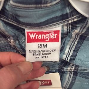 Wrangler Boy Plaid and Navy Blue Long Sleeve Outfit Size 18M